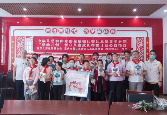 2022年5月,啵比赞比幸福童年计划-“慈幼共创”留守儿童成长帮扶计划来到重庆市城口县龙田乡、长寿区八颗街道曙光村、綦江区中山路小学和隆盛镇新场小学为当地留守儿童开展儿童成长帮扶活动。在重庆市城口县龙田乡为山区的孩子开展“放学后”成长课堂,通过“绕口令”、“数学逻辑”等方式让留守儿童们感受到了学习的快乐和兴趣;“六一”儿童节前来到重庆市长寿区八颗街道曙光村、綦江区中山路小学和隆盛镇新场小学,为当地的留守儿童开展帮扶活动,与孩子们在游戏和课堂中分享和互动,并送去节日的祝福蛋糕。